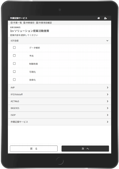営業メンバーは隙間時間に記録することで報告業務にかかる時間を短縮できました。 営業部門長は、メンバーがこまめに業務報告をしてくれるので、タブレットから部下の状況把握を対面同様に行うことができるようになりました。