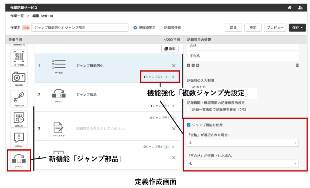 記録値入力後に、目的のページへすぐに移動できるジャンプ機能を強化しました。