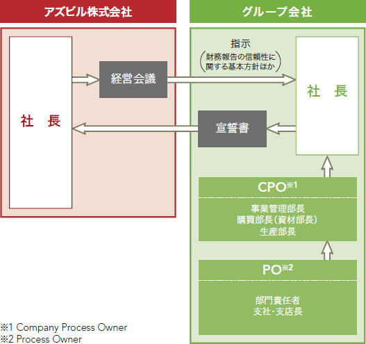 内部統制システムのazbilグループ全体への展開を図り、グループ各社の経営・業務執行とその監視、及び内部統制等の水準を底上げするとともに、適正会計の徹底やグループ全体としてのガバナンス強化に努めています。