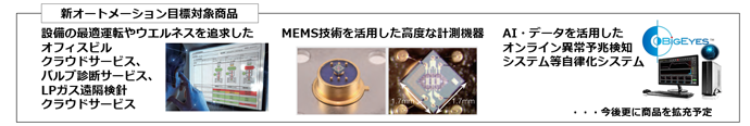 事業環境の変化が激しい現代では、データに基づく経営、操業、環境対策などが求められています。新オートメーションは、従来のオートメーションだけでは解決できない持続可能性を阻害する要因(機器の故障など)およびカーボンニュートラルや就労人口減少などの社会課題への素早く、質の高い対応力により、お客さまの生産現場、職場環境の持続可能性を高めることを実現します。具体的な対象製品・サービスは、MEMS技術を活用した高度な計測機器の提供からクラウドを活用したオフィスやプラントでのサービスの提供、AI・データを活用した自律化システムなどになります。さらに、様々な分野で活躍する企業や各種研究機関とのパートナーシップの拡大により、当社の技術や知見をより広く社会に実装することで事業を伸長し、SDGsの実現に貢献します。