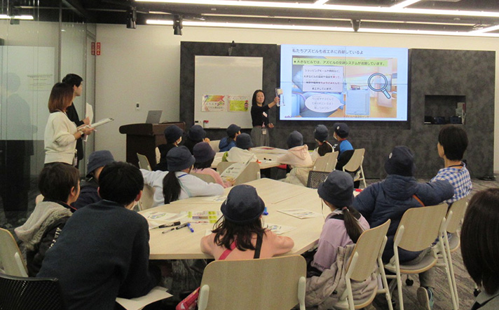 As part of our community contribution efforts, the azbil Group has been providing educational support to local elementary schools. Since FY2022, we have organized energy-saving tours for third-grade students of an elementary school near the new building of the Fujisawa Technology Center research and development base.