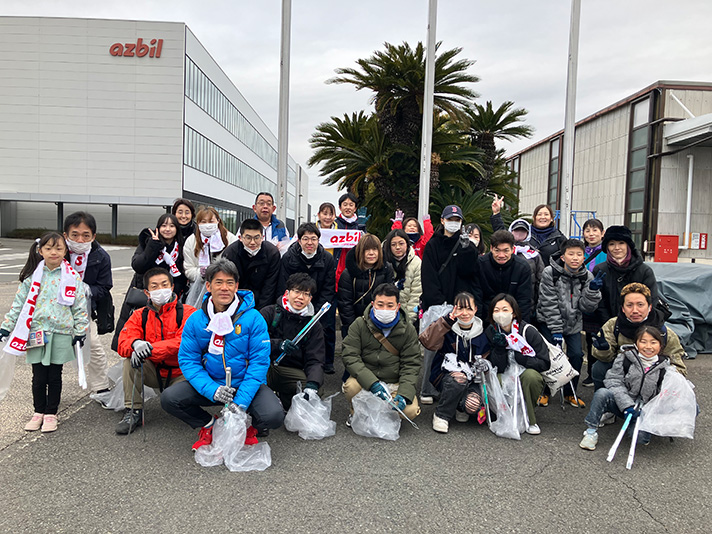 With the aim of contributing to environmental preservation, each azbil Group business site voluntarily participates in clean-up activities in their respective local areas, including nearby coasts, rivers, mountains, and the surroundings of buildings